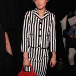 Iniziamo da una delle ultime passerelle, quella di Marc Jacobs che attirato un sacco di celebrities, tutte vestite di righe. C’erano Sofia Coppola con una t-shirt bianca con righe nere a contrasto, Rachel Zoe con una tuta con pantalone palazzo di nuovo righe black & white e bianco e nero anche per Christina Ricci, dove la riga del completo era un sottile piping, che disegnava geometrie sul completo in maglia top corto e gonna midi.