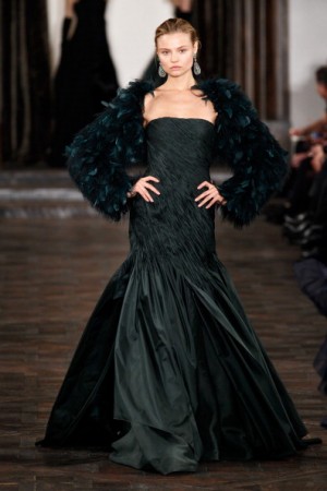 Lo scintillio di Ralph Lauren invece proviene direttamente dal mondo dorato delle zarine di Russia che indossano abiti da ballo tutti in taffetta e drappeggi a corteggia d’albero realizzati da piccole aziende artigianali italiane. Con sottogonne di organza e crinoline.